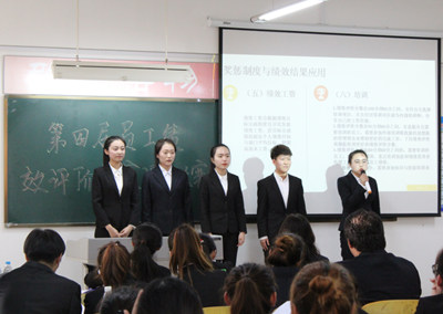 经过评委会对38组176名同学设计方案的初评,评选出9组45名同学入围决赛。管理学院人力资源管理教研室教师孙华、蔺蕊和卢艳担任本次比赛的评委。副校长韩毓洁、相关教学与职能部门负责人及部分辅导员现场观看了比赛情况。