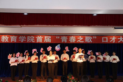 11月29日下午,由汉语言文学专业主办,学生工作办公室协办的通识教育学院首届“青春之歌”口才大赛总决赛于图书馆五楼报告厅正式拉开帷幕。为达到以赛促学的目的,本次大赛从策划、组织到宣传全部由学生按照任务小组来完成,将专业课程中涉及到的采写编、组织沟通协调、办会办文等能力融为一体进行集中训练,虽说是一种新的教学尝试,但却亮点纷呈。
