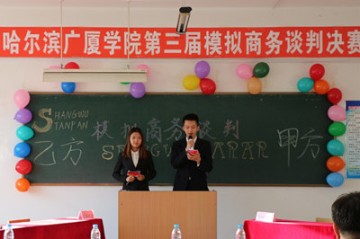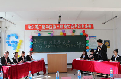 为提高我校学生的商务知识素养,拓展商务知识视野,推进专业知识理论同实践的有机结合,11月29日下午,哈尔滨广厦学院第四届职业技能大赛之模拟商务谈判决赛在第三教学楼320教室如期而至。