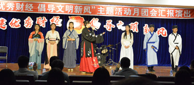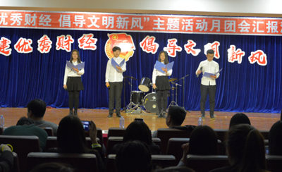 11月26日,由哈尔滨广厦学院财经学院团总支举办的“创建优秀财经,倡导文明新风”主题活动月团会汇报演出在图书馆五楼报告厅举行。