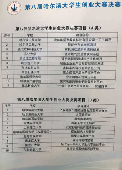 本次创业大赛吸引了来自黑龙江、辽宁、吉林、宁夏、山东、陕西、河北、北京等8个省市的众多高校参加,累计征集项目总数达1317个,其中A类项目(产品技术成熟,已完成中试的项目)124个,B类项目(产品技术尚未成熟,处于创意研发阶段)1193个。大赛经过初赛、复赛评委会公平、公正、严格的评审,我校由李佳聪、左淼、杨超、邱浩一、李霖等9名学生组成的“桃李不言创业团队”在付杰老师的精心指导下,经过激烈的比拼较量,在众多高校中脱颖而出,他们的创业项目《黑河味道跨境电子商务系列平台》与山东理工大学、中国石油大学、西北农林科技大学、东北林业大学、东北农业大学、吉林农业大学、哈尔滨工程大学、哈尔滨师范大学等17所高校的21个项目一同进入总决赛。我校也成为了本次大赛中唯一一所晋级A类总决赛的民办普通本科高校。