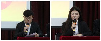 通识教育学院刘敬民同学代表第二十四期入党积极分子培训班学员发言。财经学院杜新宇同学代表第六期预备党员培训班学员发言。