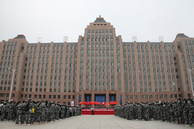 军训工作领导小组组长、校长叶曲炜授哈尔滨广厦学院军训团团旗,驻训部队领队教官代表接军训团团旗。随后各营连在教官的指挥下前往军训场地集合,新生军训正式开始。