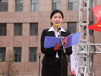 在校生代表李怡萱同学发言,她向来自五湖四海的新同学表示了最诚挚的问候和最热烈的欢迎,希望2017级新生充分利用学校丰富的资源,努力学习专业知识,提升专业素养;积极参加学生活动,体验多彩的大学生活;加入海外课堂项目,开拓国际视野,在更广阔的舞台上成就非凡自我;努力做“四学青年”,在哈尔滨广厦学院度过美好而又难忘的大学四年!