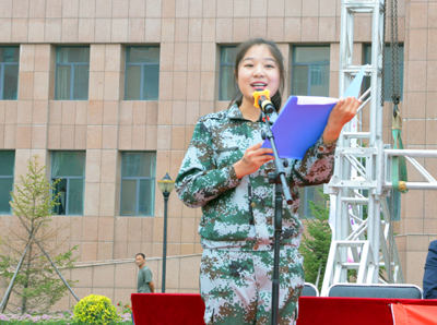 2017级新生代表管理学院赵玉莹同学发言,表达了对未来生活的美好向往和无限憧憬,她表示在未来的四年里,要揽万卷文集,吸百代精华,提高分析问题解决问题的能力,不断丰富实践经验,在以后更为激烈的竞争中乘风破浪,以军人的姿态,昂首阔步迈向更灿烂的明天,为学校增光添彩。