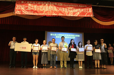 国立台湾师范大学教育学系名誉教授吴清基教授(左四)、台湾教育部常务次长林腾蛟博士(右一)、台湾教育部艺术司司长张明文博士(左三)、台湾师范大学技术与职业教学中心主任戴建耘教授(左一)、北京金芥子国际教育咨询有限公司赫亮博士(左二)出席了颁奖典礼,图为颁奖嘉宾与我校师生合影