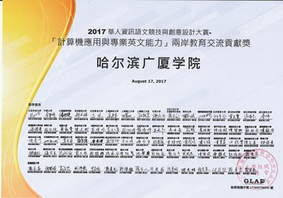 哈尔滨广厦学院第一次参加海峡两岸国际竞赛,能取得如此佳绩,体现了学校在计算机基础课程教学中重视对学生实际操作能力的培养,为学生优质就业打下了坚实的基础。师生为学校争得了荣誉,也为海峡两岸教育交流做出了贡献。