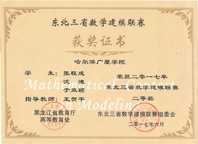 2017年东北三省数学建模联赛于4月20日至5月5日进行,比赛采取网上公布赛题,撰写论文提交的形式进行。我校参赛队伍由通识教育学院数学教研室五位教师亲自指导,学生们克服重重困难,圆满完成了所选题目的论文撰写。