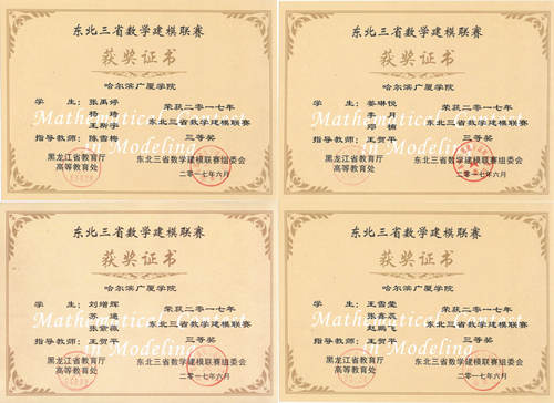 近日,2017年东北三省数学建模联赛圆满结束。从东北三省数学建模联赛组委会传来喜讯,经过组委会严格的筛选和评审,我校十四组参赛队伍共斩获一等奖一项、二等奖一项、三等奖四项、成功参赛奖八项。