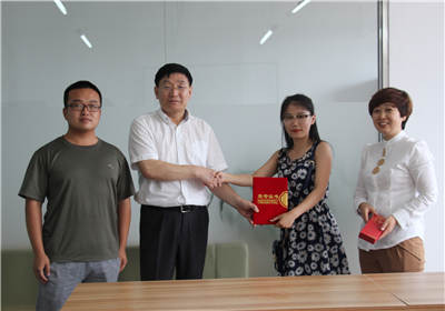 随后,乔院长为编辑部代表颁发了“校园新闻报道特别贡献奖”的荣誉证书和纪念品。乔院长表示,纪念品之所以选择了一个如意形状的U盘,就是想祝福每个人的未来都事事如意,他殷切地叮嘱大家:“要在今后的学习、工作岗位上不断进步,不断传来佳音,让母校为你们骄傲!同时,也希望你们一如既往地关注母校的发展,编辑部永远都是你们的家,希望你们常回家看看!”