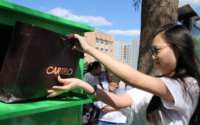 丽日春光绿满地,浓浓爱心暖校园,在不到20分钟的时间里,两个高1.5米、宽0.8米、厚0.8米的箱子被塞得满满的。