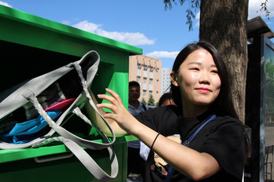继“红灯记四周年·美丽香坊”大型公益徒步活动后,汉语言文学专业学生的暖心行动不打烊。近日,学校又迎来了两位“客人”,它们就是由省文明办和省慈善总会投放的绿色衣物捐赠箱,现已正式落户我校第一教学楼前。
