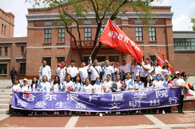 6月3日,由省文明办、哈尔滨市公安交通管理局、哈尔滨市香坊区人民政府主办,黑龙江晨报承办的“红灯记四周年·美丽香坊”公益徒步活动,在香坊区劳动公园激情开走。本次活动的主题是“珍爱生命,文明出行”,这与我校长期以来坚持的“三生”教育是不谋而合的。为了让学生更好地树立生命安全意识,在校长叶曲炜的大力支持下,通识教育学院党总支书记李洪斌、辅导员李德林亲自带领汉语言文学专业的五十名学生参加了本次徒步活动。