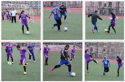 本届比赛是学校工会的一次创新尝试,是首次教工男女混合足球比赛。每支队伍至少有两名女性教工参赛。比赛按国际足联最新规则执行,女队员并无特权。随着裁判的开场哨响,双方队员便积极在场上跑动,寻找进攻机会,攻势此起彼伏,气氛十分激烈。