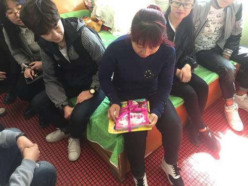 4月9日,我校学生会学生干部服务队购置了一些生活必需品,坐车前往阿城市探望了这样一位平凡却又伟大的母亲——朱阿姨。