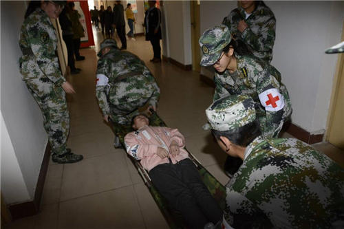 演习过程中,消防官兵兵分三路开展救人和灭火行动,他们毫不犹豫地冲向火场,采取专业、科学、立体的救援行动,协同配合,发挥装备的最大效能,把“被困”师生转移到安全地带,“火势”得到了有效控制,并最终得以成功“扑灭”。临近结束,我校民兵连士兵用担架从楼内抬出“昏迷人员”,校医院医生与后勤保卫处特勤队员一起组织抢救,待伤情稳定后转送就近医院治疗。