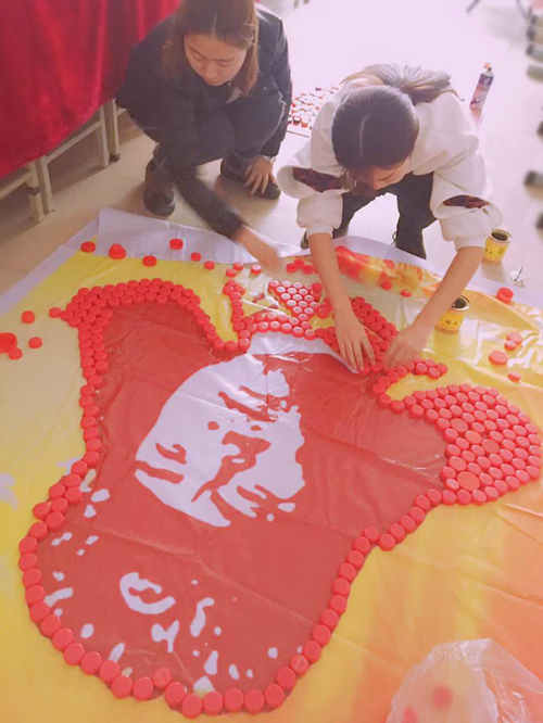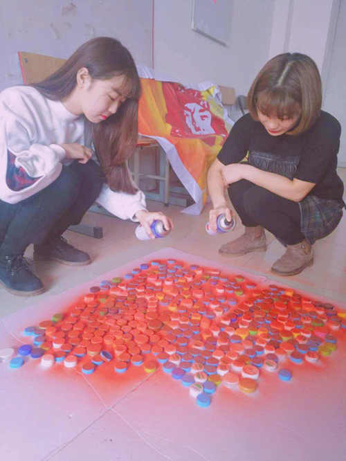 “瓶盖雷锋”从收集瓶盖开始,团总支的同学们团结一致,一颗颗五颜六色的瓶盖是坚持的力量源泉,是团结协作的结晶。收集、喷色、拼摆、粘贴,任何一个过程都是共同努力的成果。