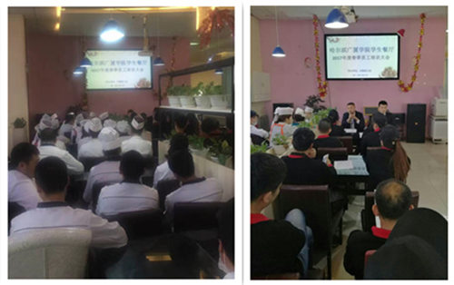 为了不断提升饮食服务从业人员的职业道德和职业素养,3月10日下午,后勤保卫处召开了2017年度春季员工培训大会,饮食服务中心全体从业人员参加了培训。培训主要包括食品安全法,食堂进货、储存、销售、洗消操作流程与操作规范,饮食服务从业人员行为规范,消防安全等内容。本次培训拉开了2017年饮食服务中心员工培训的序幕,今后后勤保卫处还将有计划、有针对性地开展多次培训活动。