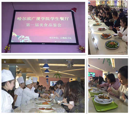为了不断提升饮食服务标准,展现广厦饮食服务风采,3月10日下午,后勤保卫处举办了“哈尔滨广厦学院学生餐厅第一届美食品鉴会”。校领导叶曲炜、韩毓洁、金连芳、张成与广大师生共同参加了活动,现场品尝美味菜品。