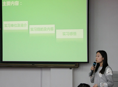 首先信息学院教师修晓玉介绍了她到哈尔滨学邦科技实习的主要内容和心得体会。计算机专业发展迅速,知识更新快,本次实习使她开阔了思路和视野,获得了新知识、新技能,积累了教学案例,为今后的教学指明了方向,使教学内容更加贴近企业岗位,有助于对学生知识和技能的培养更好地与岗位需求对接。