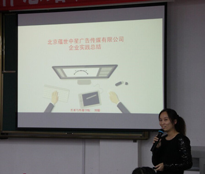 艺术与传媒学院教师刘聪分享了在北京蕴世中兴传媒有限公司的实践经历,她通过这次实践感受到广告公司设计风格的不断变化,包括材质、软件的不断更新也让人耳目一新。她深刻体会到校园与企业联系已经势在必行,教师企业实践在搭建这种联系的过程中发挥着重要作用。