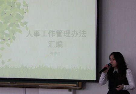 人事处处长张亚红从招聘入职、劳动合同、员工福利、考勤差假、考核、岗位调动、专业技术职务评聘等方面对人事工作管理办法进行了全面解读,她希望全体教职工积极学习和关注学校人事工作管理办法,严格遵守学校制度。