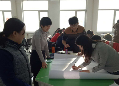 本次培训采用3天“线上”+1天“线下”相结合的培训方式。杨江涛老师通过项目演练,用生动活泼的分组PK式教学活动,引导参训教师掌握混合式教学方法与移动信息化工具的结合。参训教师分成八个小组,每个小组由组长带领,通过研讨、协同合作的方式进行学习。通过一整天的学习,每位参训教师都初步形成了一份结合蓝墨移动信息化平台以及混合式教学方法的、具备可执行性的教学设计方案。