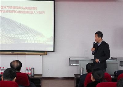 艺术与传媒学院院长梅常青作了题为《艺术与传媒学院与凤凰教育VR教学合作项目应用型技能型人才培养》的专题报告,通过与凤凰教育合作打造数字媒体VR产教融合将使学校艺术设计专业教学处于黑龙江高校领先地位。