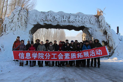 1月5日上午,信息学院分工会以“携手并肩,勇往直前”为主题的素质拓展活动在哈尔滨市玉泉威虎山滑雪场顺利举行。信息学院院长张洪志,副院长代新亮、郭鑫及信息学院教师、辅导员、行政人员等20余人参加了此次活动。