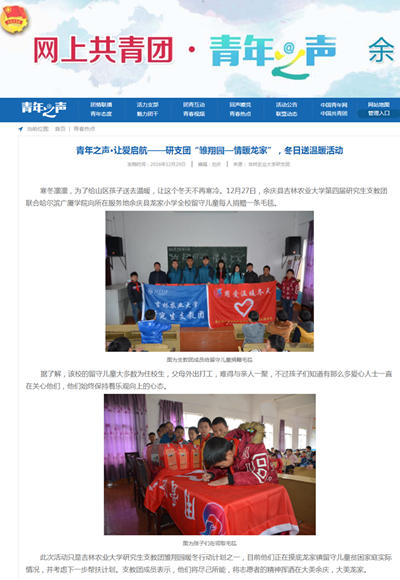 冰雪严冬,寒风凛冽,即使这样,也挡不住我们满是爱意的心。12月27日,财经学院团总支联合吉林农业大学研究生支教团为贵州省余庆县龙家小学全校留守儿童每人捐赠了一条毛毯。