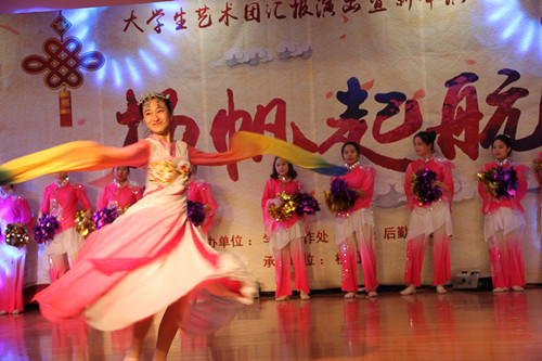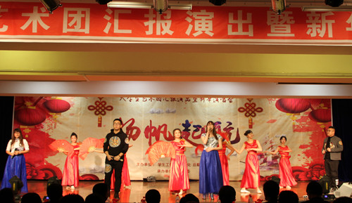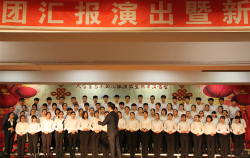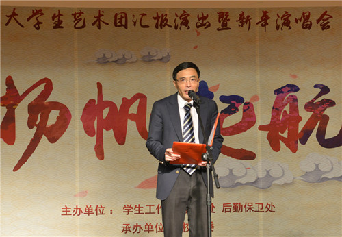12月21日下午15时,由学生工作处、教务处、后勤保卫处联合主办,校团委承办的哈尔滨广厦学院大学生艺术团汇报演出暨新年演唱会在图书馆五楼报告厅隆重举行。校领导叶曲炜、朱定强、韩毓洁、金连芳、全体中层干部、部分教师及辅导员代表齐聚一堂,与千余名学生共同观看了这场大型文艺演出。