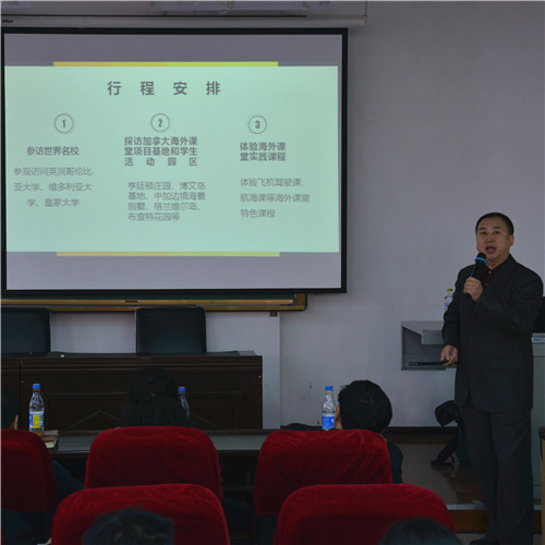党委副书记、督导专员金连芳与国际交流与合作中心主任高建国分别作报告,图文并茂地讲述了他们参加北方国际大学联盟加拿大访学团的学习情况和心得体会,展示了海外课堂项目得天独厚的优势和与日俱增的影响力,令与会全体人员对海外课堂项目有了更加深刻的认识和了解。