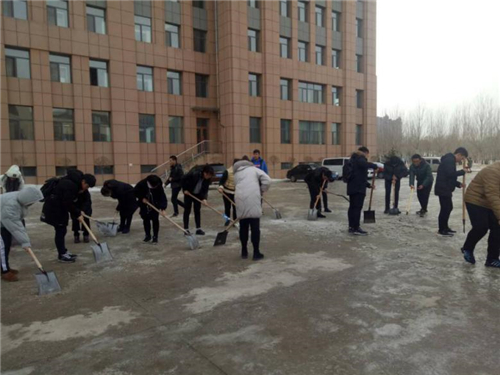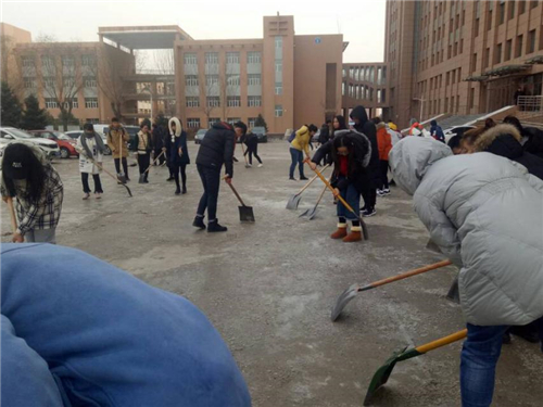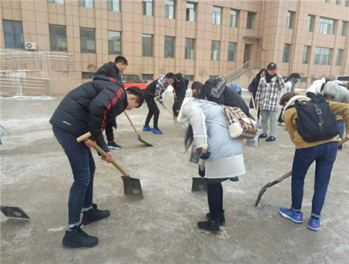 11月17日中午12时,通识教育学院团总支及学生会的学生干部利用中午休息时间到学校主楼前清理冰雪。