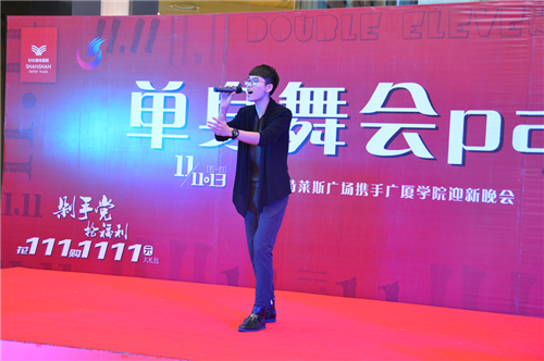 为热烈欢迎艺术与传媒学院2016级新生、迎接“双十一”的到来,11月11日至13日由哈尔滨杉杉奥特莱斯主办、哈尔滨广厦学院艺术与传媒学院学生会承办的“单身舞会Pa暨杉杉奥特莱斯携手广厦学院迎新晚会”在杉杉奥特莱斯一楼隆重举行。哈尔滨广厦学院艺术与传媒学院400多名学生现场观看了演出。