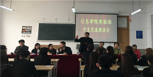 11月4日,在第二教学楼362教室举行了信息学院双语教学座谈会,校长叶曲炜,副校长韩毓洁,教务处副处长赫英、王金伟,信息学院院长张洪志,信息学院副院长郭鑫、代新亮,通识教育学院副院长张丹及双语实验班的70余名同学参加了座谈会。