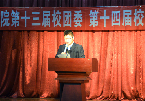 11月1日下午17时,第十三届校团委、第十四届校学生会及第十四届社团联合会成立大会在图书馆五楼报告厅隆重举行。学生工作处处长龙和平、副处长赵云龙,各二级学院副院长周广欢、代新亮、李洪斌,校团委书记胡冰以及各二级学院学团组织指导教师出席了大会。