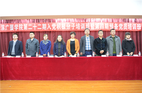 10月24日下午,哈尔滨广厦学院业余党校第二十二期入党积极分子培训班暨第四期预备党员培训班开班式在图书馆五楼报告厅隆重举行。党委副书记、督导专员金连芳,党委办公室主任戴宏,学生工作处处长龙和平、副处长赵云龙,各二级学院党总支书记周广欢、赵静、代新亮、李洪斌及党委办公室组织员王薪宇出席了开班式。开班式由党委办公室主任戴宏主持。