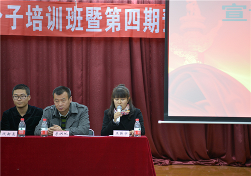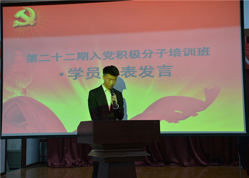 管理学院海涵同学代表第二十二期入党积极分子培训班学员发言。财经学院王秋敏同学代表第四期预备党员培训班学员发言