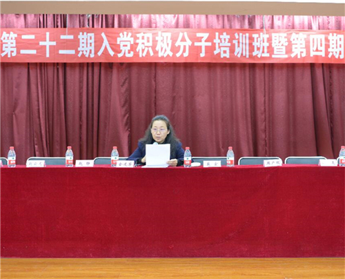 党委办公室主任戴宏向全体学员表示了祝贺,并提出希望和要求。她希望全体学员要认真学习、坚定理想信念。在全国人民认真学习领会习近平总书记系列重要讲话精神,全党开展“学党章党规、学系列讲话,做合格党员”两学一做学习教育工作的大好形势下,认真学习和掌握党的基本理论、基本纲领、基本经验和基本知识,端正入党动机,确立共产党人应有的理想信念和世界观、人生观、价值观。