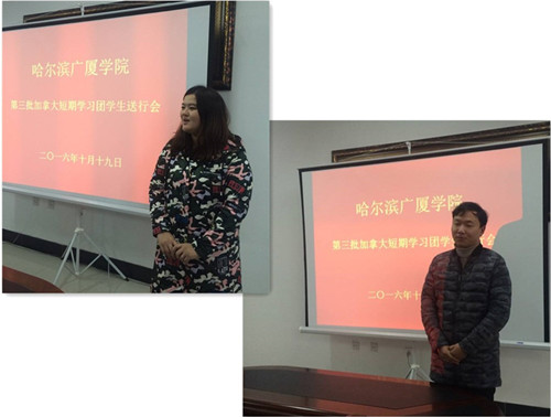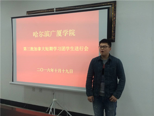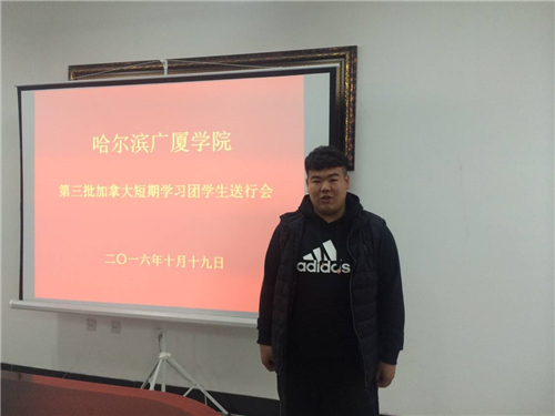 10月19日下午13时,学校在主楼第三会议室举行了海外课堂加拿大1021团学员欢送会。国际交流与合作中心主任高建国,财经学院副院长周广欢,信息学院副院长代新亮,优秀辅导员周围、张向阳,出行学员杨飞宇、姜明辉及送行学生代表参加了本次活动。