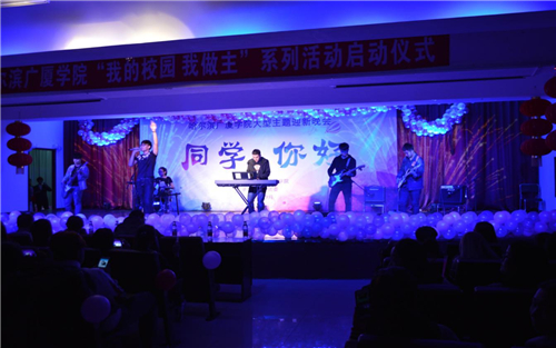 由哈尔滨广厦学院学生工作处主办、校团委承办的哈尔滨广厦学院大学生艺术团迎新晚会暨“我的校园我做主系列活动”启动仪式,于9月28日下午18时在图书馆五楼报告厅拉开了帷幕。
