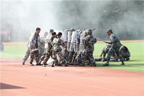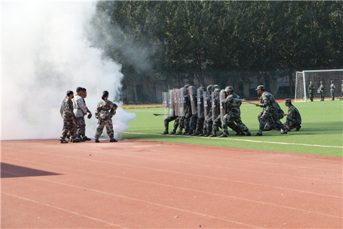 大学生是国防现代化建设的重要基石,保卫国家安全、服务人民群众是当代大学生应尽的责任和义务。为了响应国防现代化建设、保卫校园安全和谐稳定,在学生工作处副处长赵云龙的指导下,2016年5月面向全校同学招募并组建了民兵连。