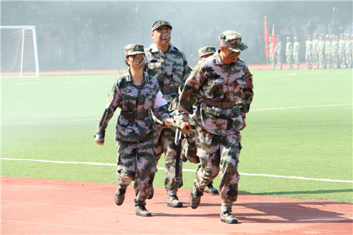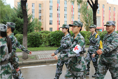每当学校有大型活动的时候,戴着红十字袖章的民兵连女兵医疗组是一道亮丽的风景线,她们“枕戈待旦”,时刻准备着应对各种突发情况,学校运动会、军训场是她们建立“战功”的完美战场。