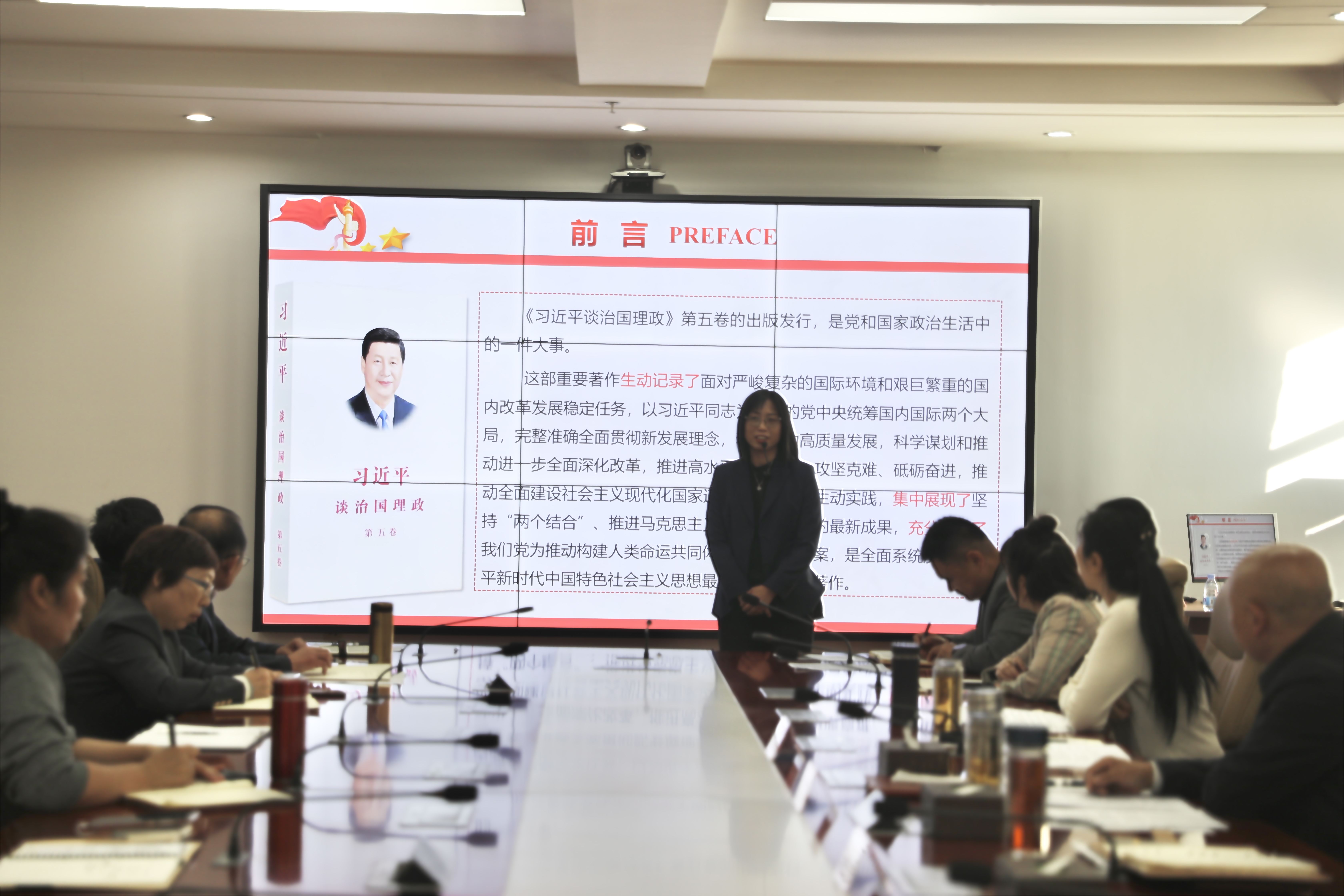 会上,马克思主义学院崔丽教授作专题辅导报告。她以深厚的理论功底和详实的实践案例,围绕《习近平谈治国理政》第五卷的核心要义进行系统讲解,重点阐释了书中体现的“两个结合”根本要求与中国式现代化理论体系的丰富内涵 ,深入剖析了著作中蕴含的原创性思想和原理性贡献,为与会人员精准把握理论精髓提供了有力指导,引发广泛思想共鸣。
